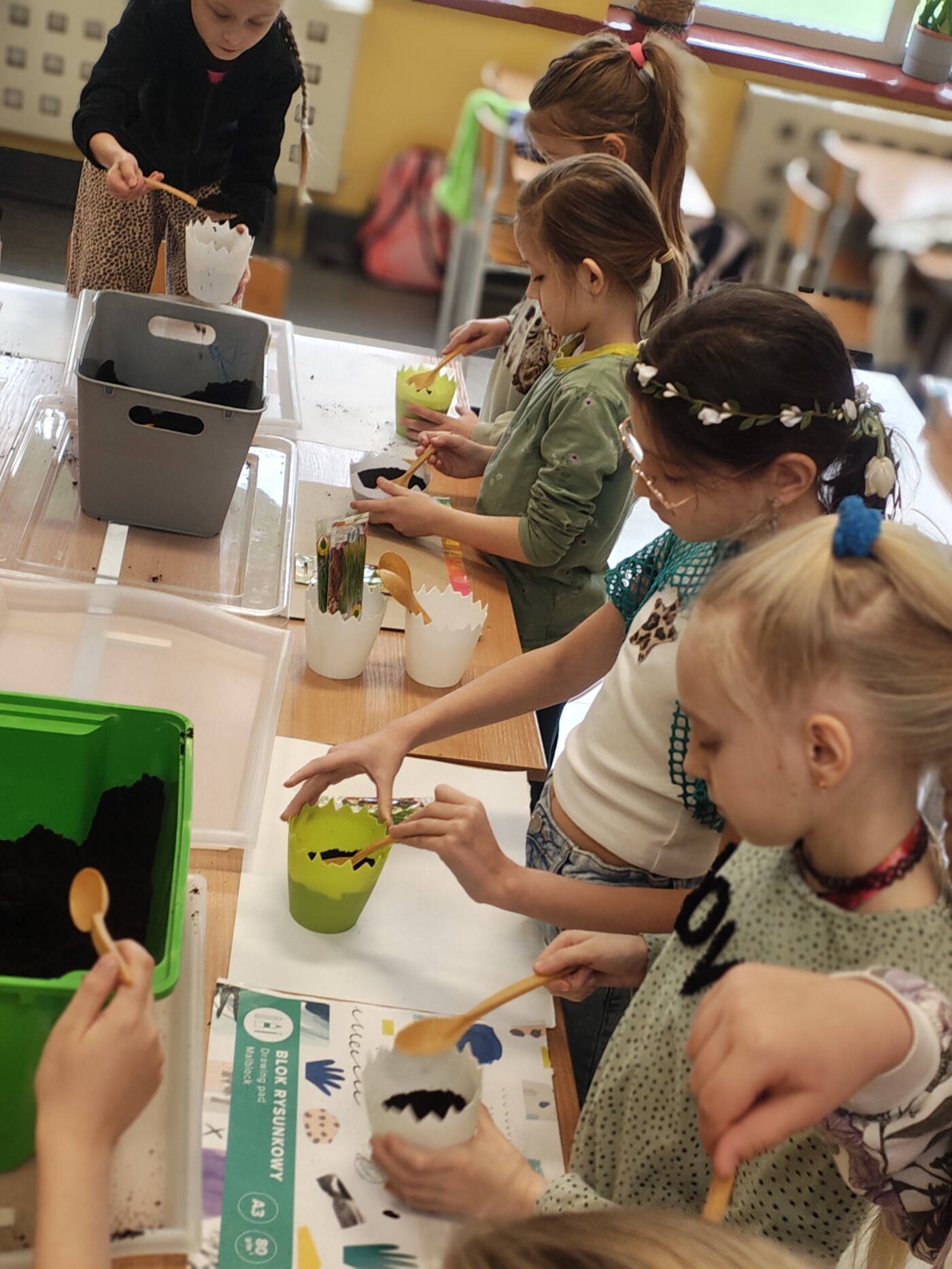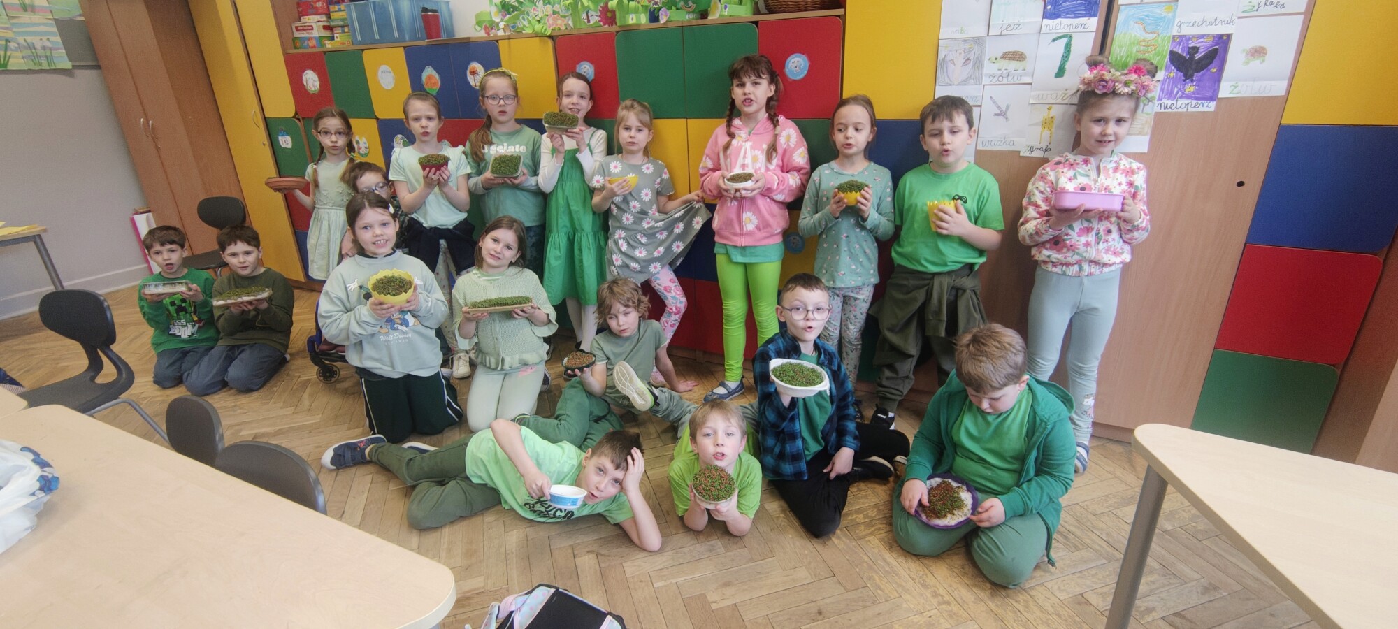 W klasach 1–3 odbyły się radosne obchody Pierwszego Dnia Wiosny. Tematem przewodnim było bogactwo zdrowotne kiełków. Uczniowie poznali ich wartości odżywcze oraz sposoby wykorzystania w codziennej diecie. W ramach zajęć dzieci siały owies i rzeżuchę, a także przygotowały zdrowe śniadanie z dodatkiem kiełków. Nie zabrakło również wiosennych prac plastycznych, które wprowadziły wszystkich w pogodny, wiosenny nastrój.